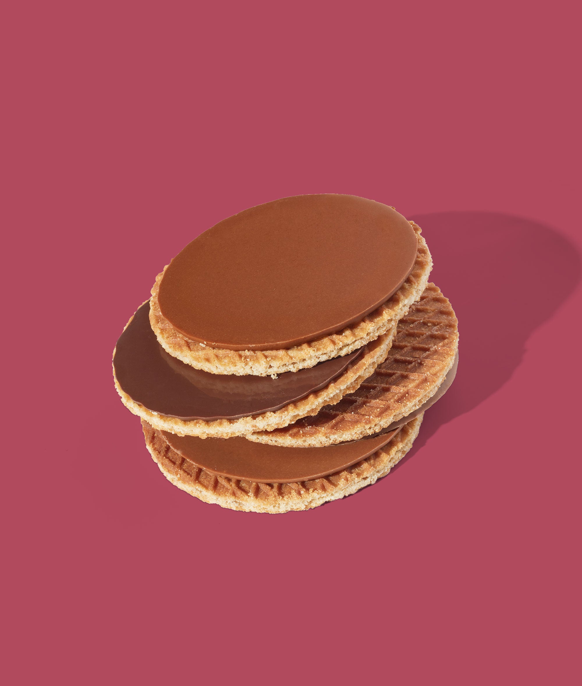 Deliciously Gooey Chocolate Cookie: Dutch stroopwafel covered in a rich layer of dark and milk chocolate.